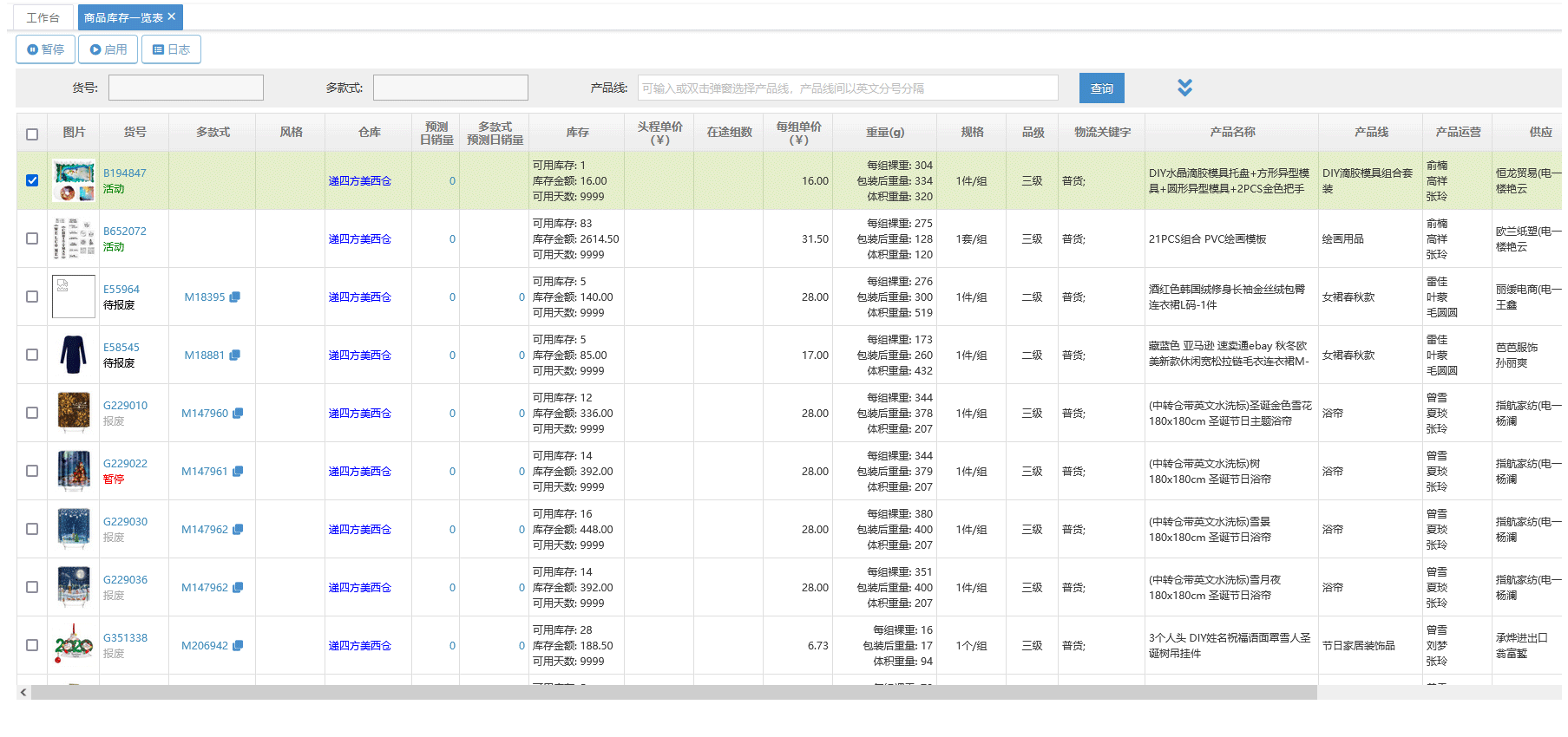 - 实时库存报告,可用、锁定、在途一览,库存健康报告